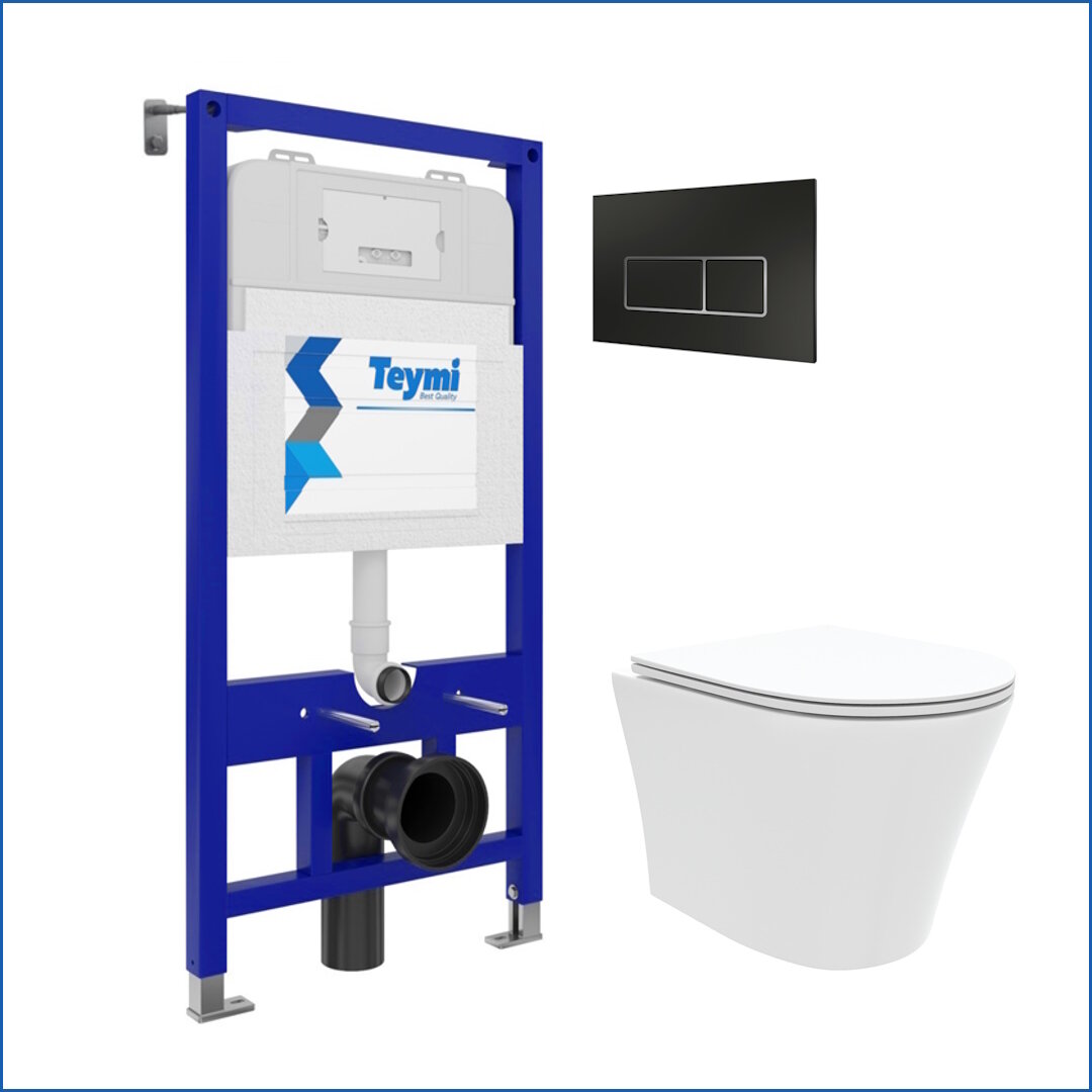 Инсталляция с унитазом комплект 5 в 1 Teymi унитаз подвесной безободковый Ellie кнопка черная T70754