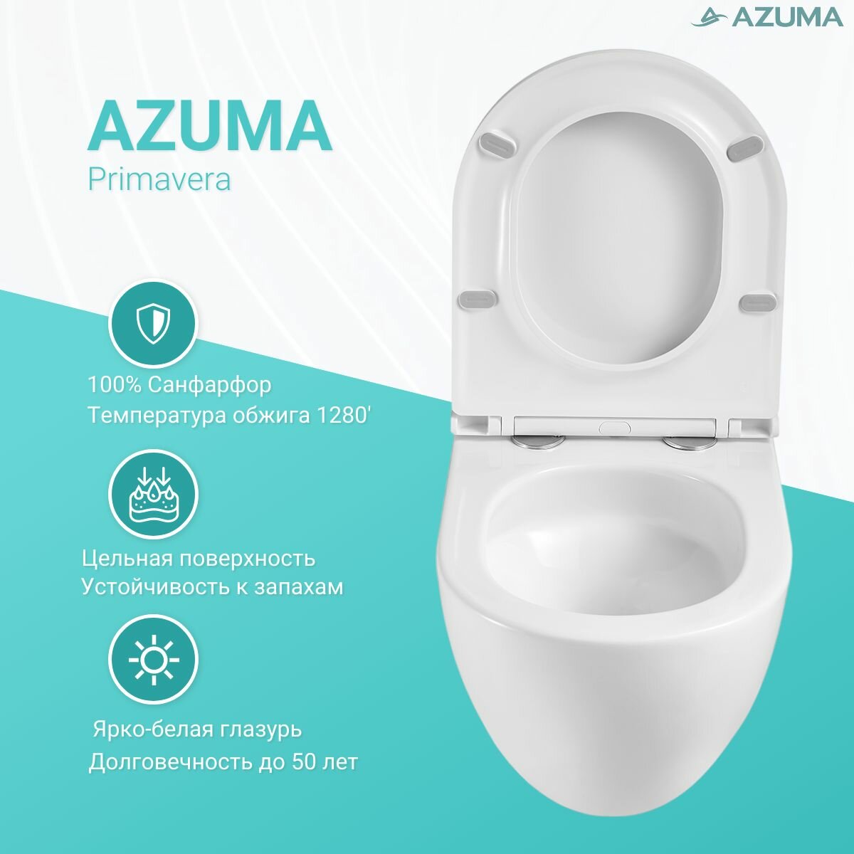 Унитаз AZUMA "Primavera" AZU025.01 Tornado 3.0 Slim25 , безободковая система, с инсталляцией