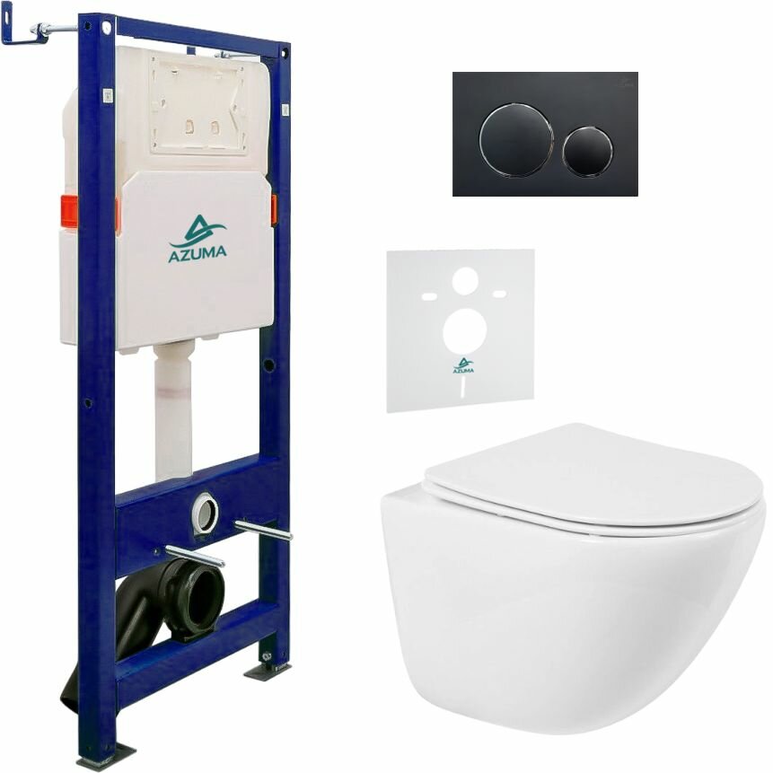 Инсталляция с унитазом комплект AZUMA Primavera торнадо 3.0, сиденье микролифт, быстросъемное + инсталляция Azuma AZU507A + кнопка Estilo AZU002.04 черная матовая