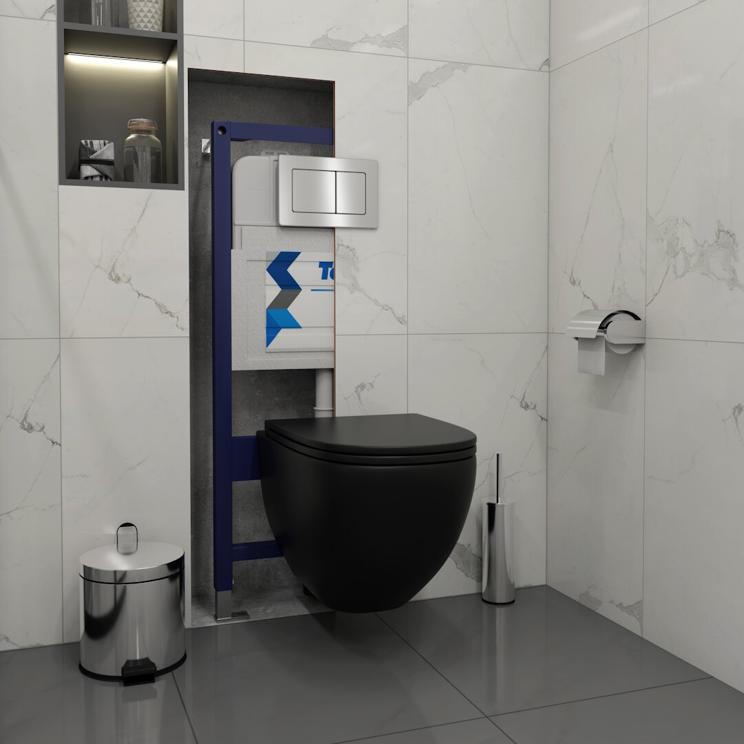 Инсталляция с унитазом 5 в 1 Teymi унитаз подвесной безободковый черный Lina S Black кнопка нержавеющая сталь F13518