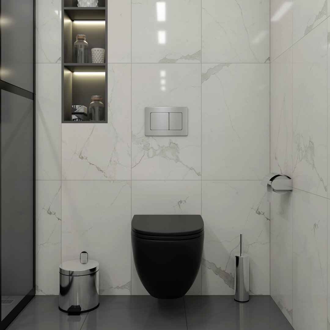 Инсталляция с унитазом комплект 5 в 1 Teymi унитаз подвесной безободковый черный Lina S Black кнопка белая / хром F13520