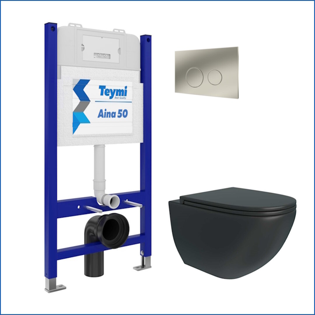 Инсталляция с унитазом 5 в 1 Teymi унитаз подвесной безободковый черный Lina S Black кнопка нержавеющая сталь F13524