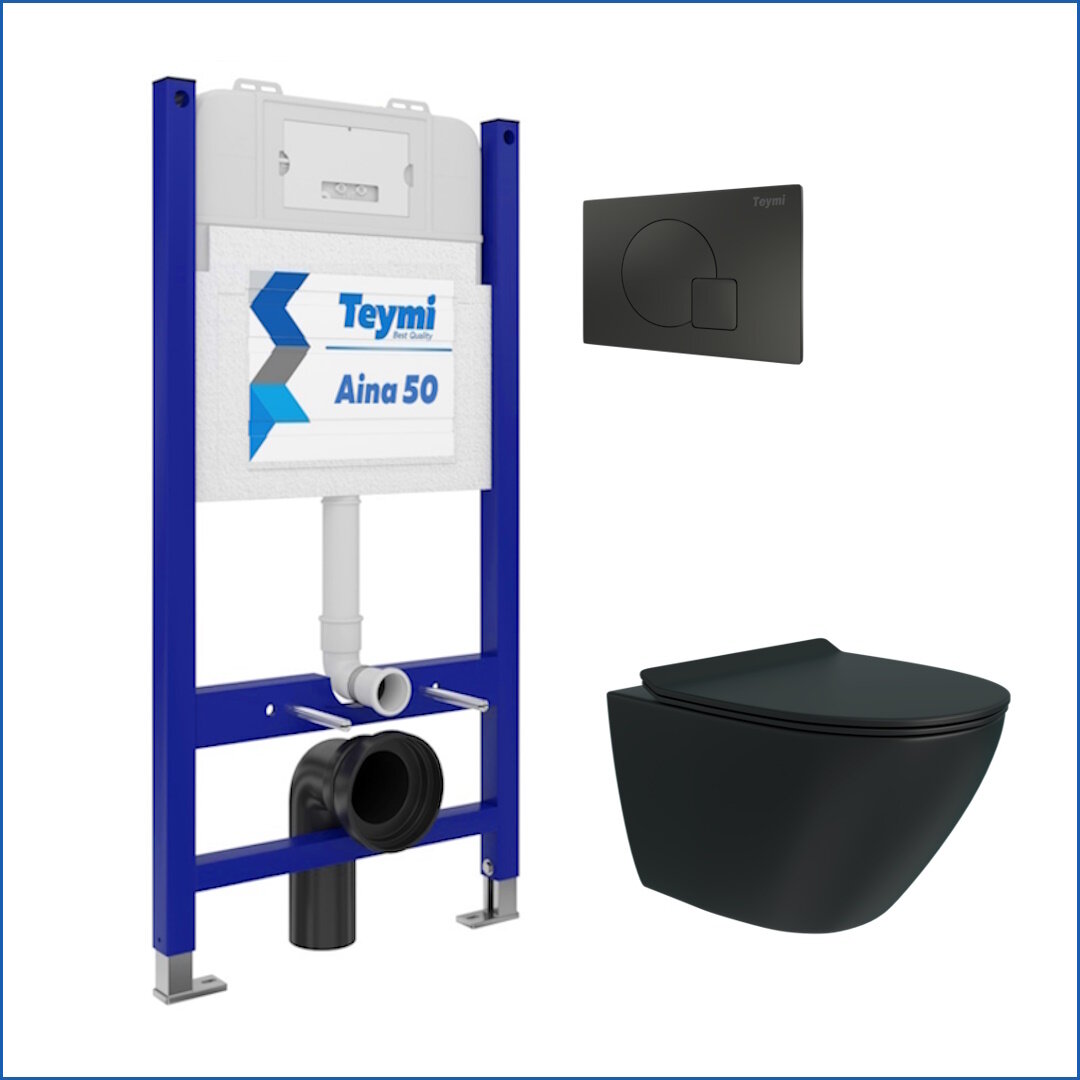 Ниже Вы можете прочитать отзывы на Инсталляция с унитазом комплект 5 в 1 Teymi унитаз подвесной безободковый торнадо черный Lina Pro Vortex Black кнопка черная F15001, ознакомится с подробными характеристиками, посмотреть интересные обзоры и фотографии на Инсталляция с унитазом комплект 5 в 1 Teymi унитаз подвесной безободковый торнадо черный Lina Pro Vortex Black кнопка черная F15001.