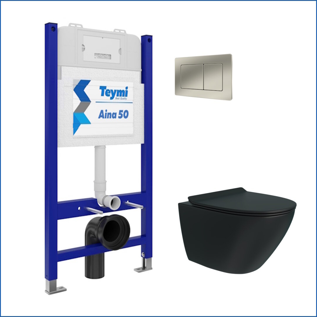 Инсталляция с унитазом комплект 5 в 1 Teymi унитаз подвесной безободковый торнадо черный Lina Pro Vortex Black кнопка нержавеющая сталь F14990