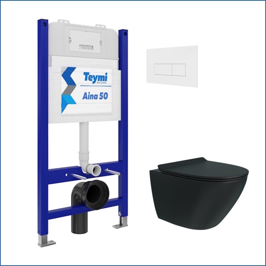 Инсталляция с унитазом комплект 5 в 1 Teymi унитаз подвесной безободковый торнадо черный Lina Pro Vortex Black кнопка белая F14989