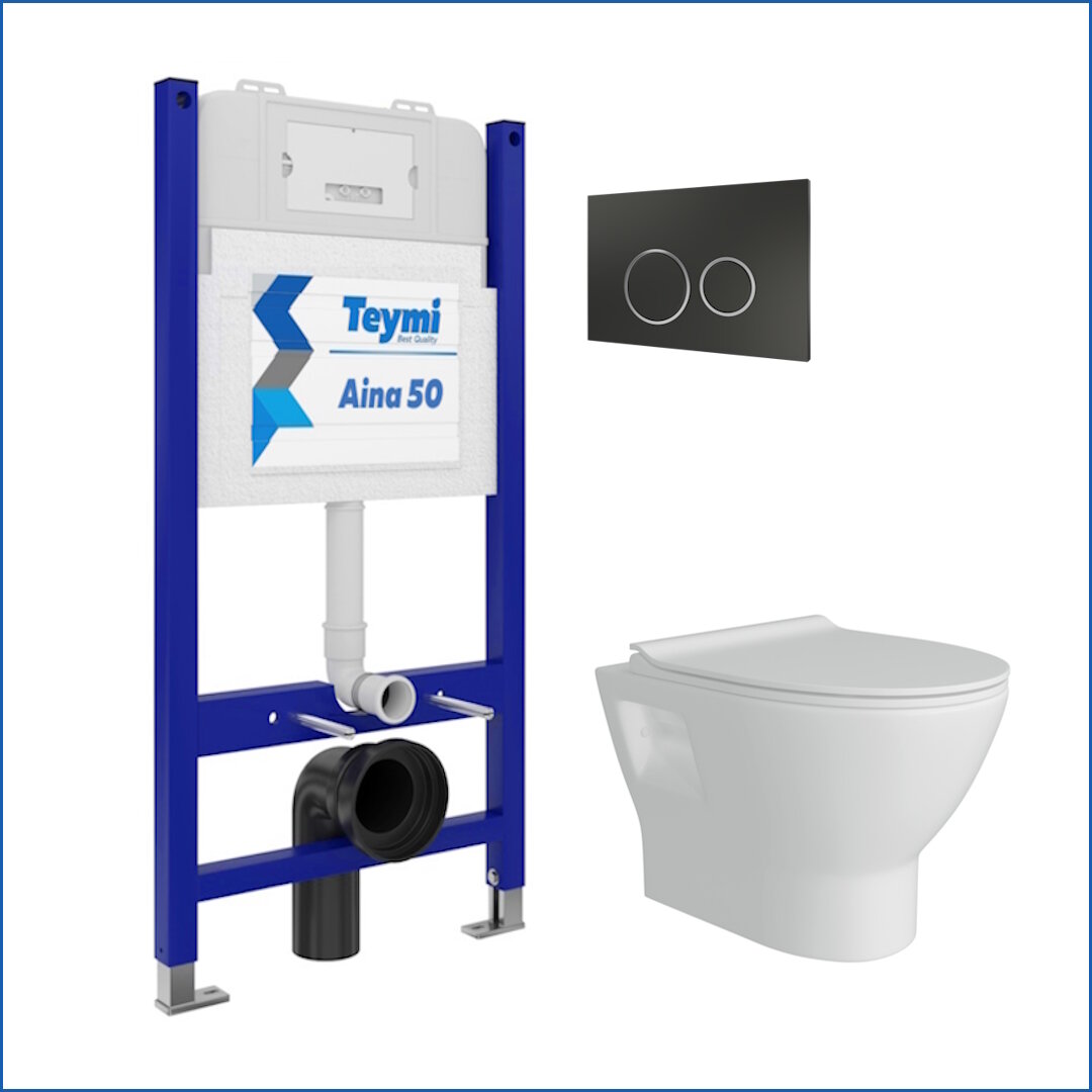 Инсталляция с унитазом комплект 5 в 1 Teymi унитаз подвесной безободковый Ritta кнопка черная / хром F13505