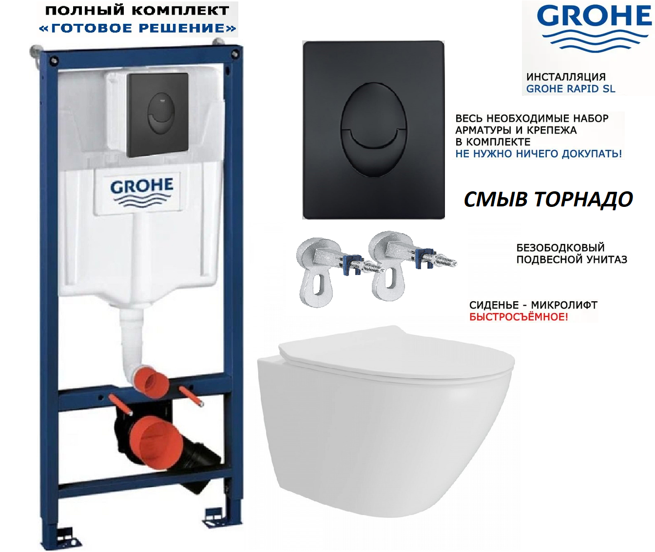 Комплект: Инсталляция Grohe Rapid SL 38721BL1 + Унитаз подвес. Lengitown Luna с сиденьем интересное: