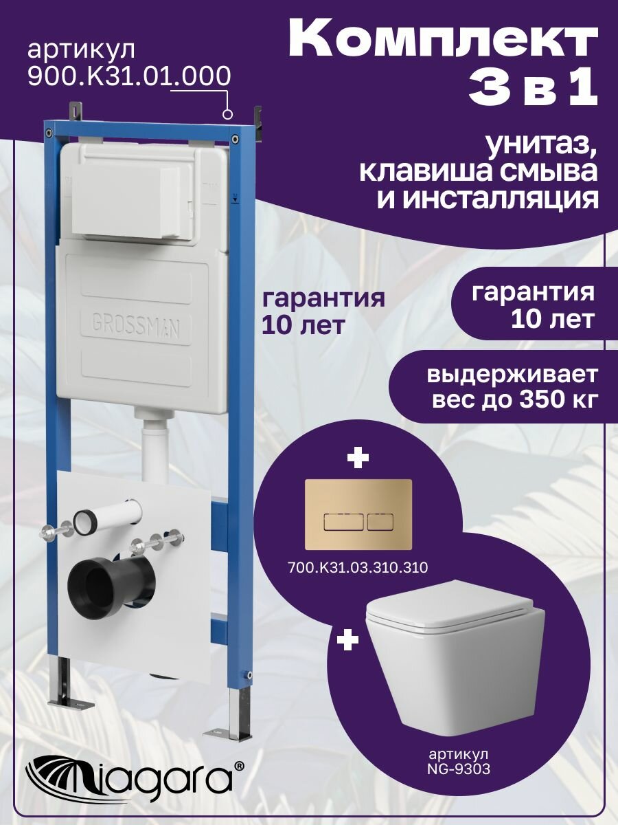 Комплект 3 в 1: Унитаз NG-9303 + Инсталляция 900. K31.01.000 + Кнопка 700. K31.03.310.310 интересное: