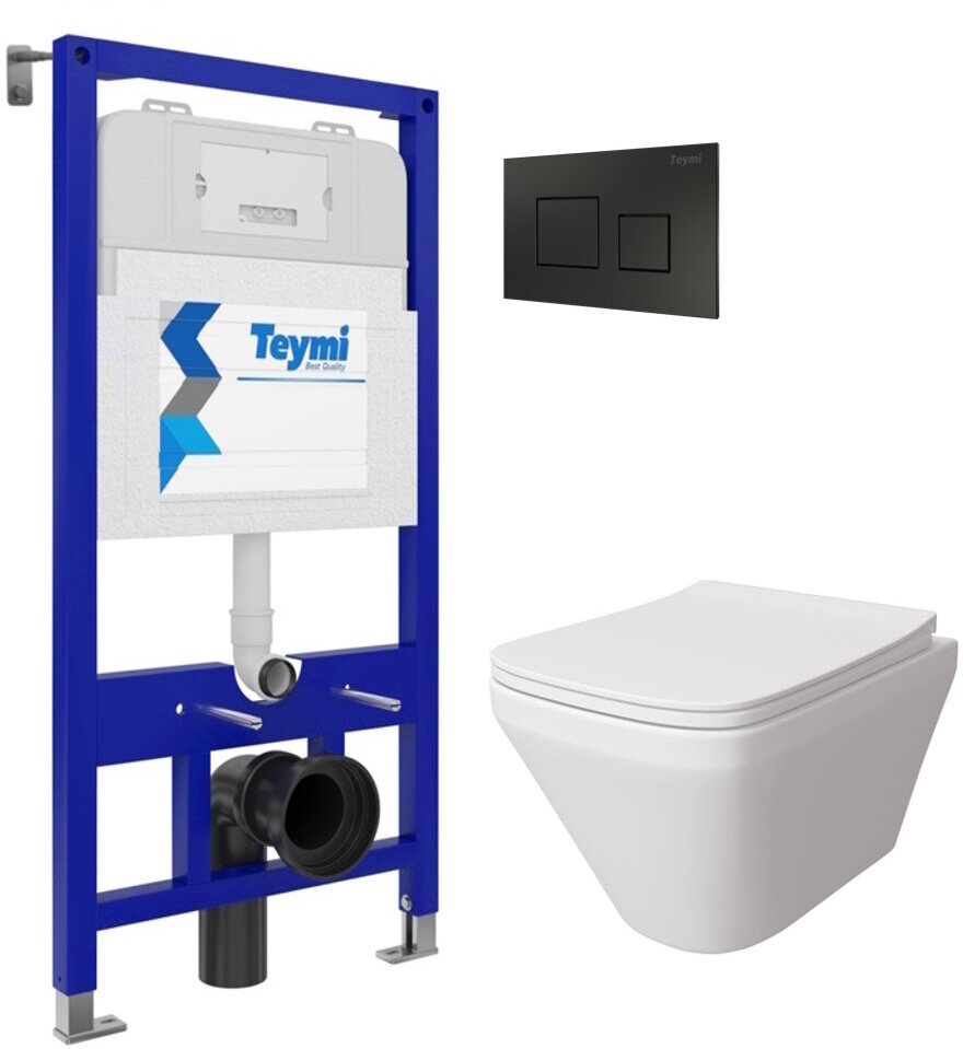 Купить Инсталляция с унитазом комплект 5 в 1 Teymi унитаз подвесной безободковый Kati кнопка черная T70780
