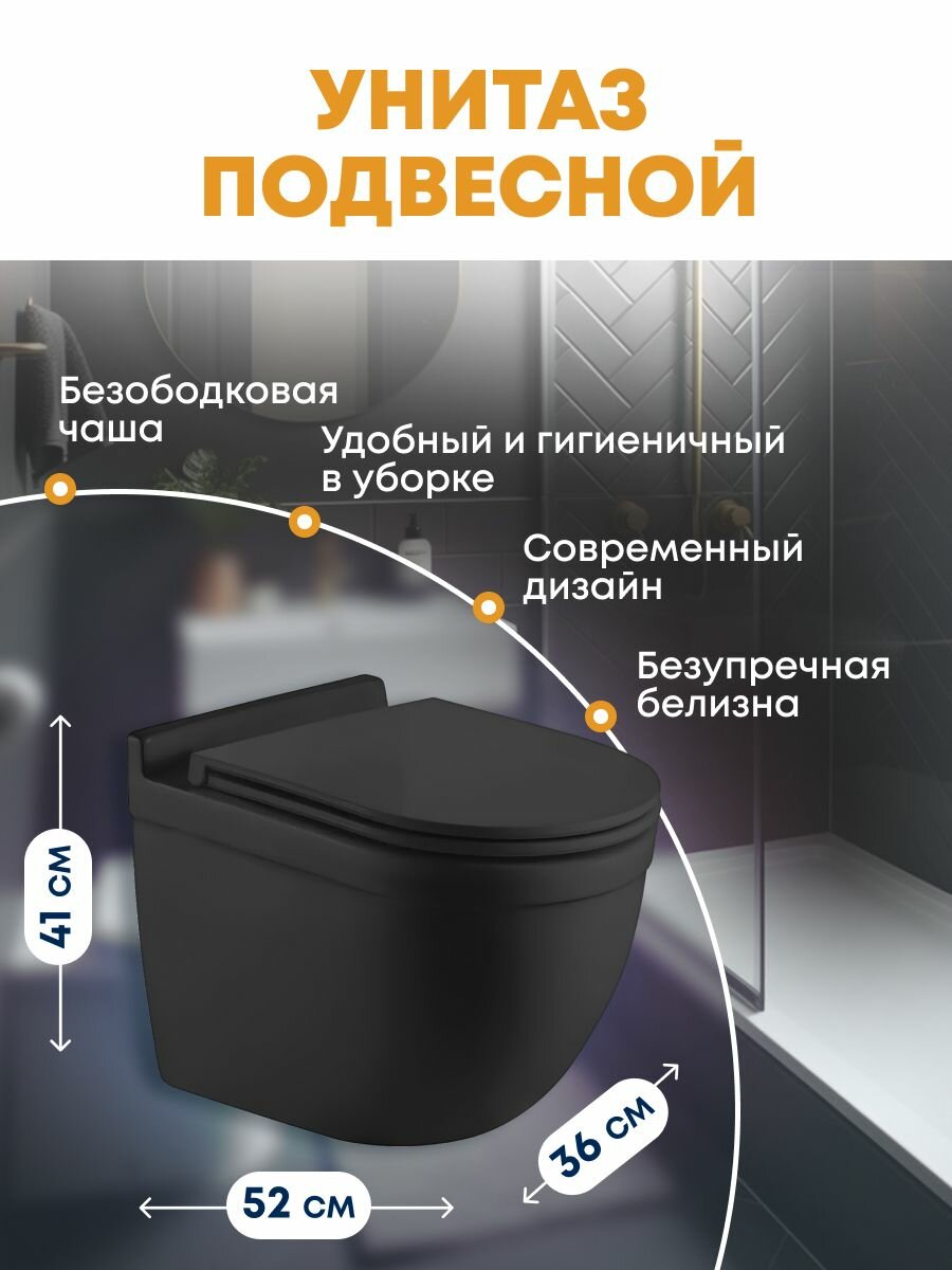 Комплект Weltwasser 6 в 1: Подвесной унитаз черный матовый, инсталляция, кнопка хром глянцевая круглая интересное: