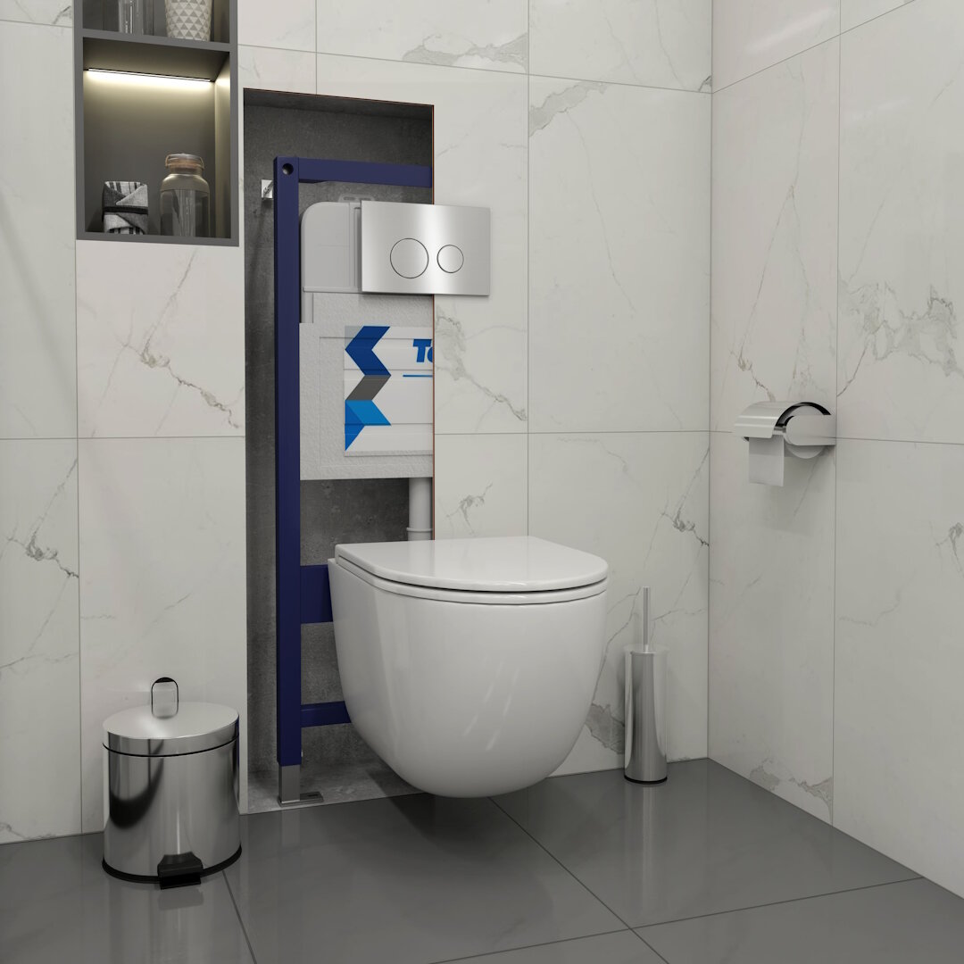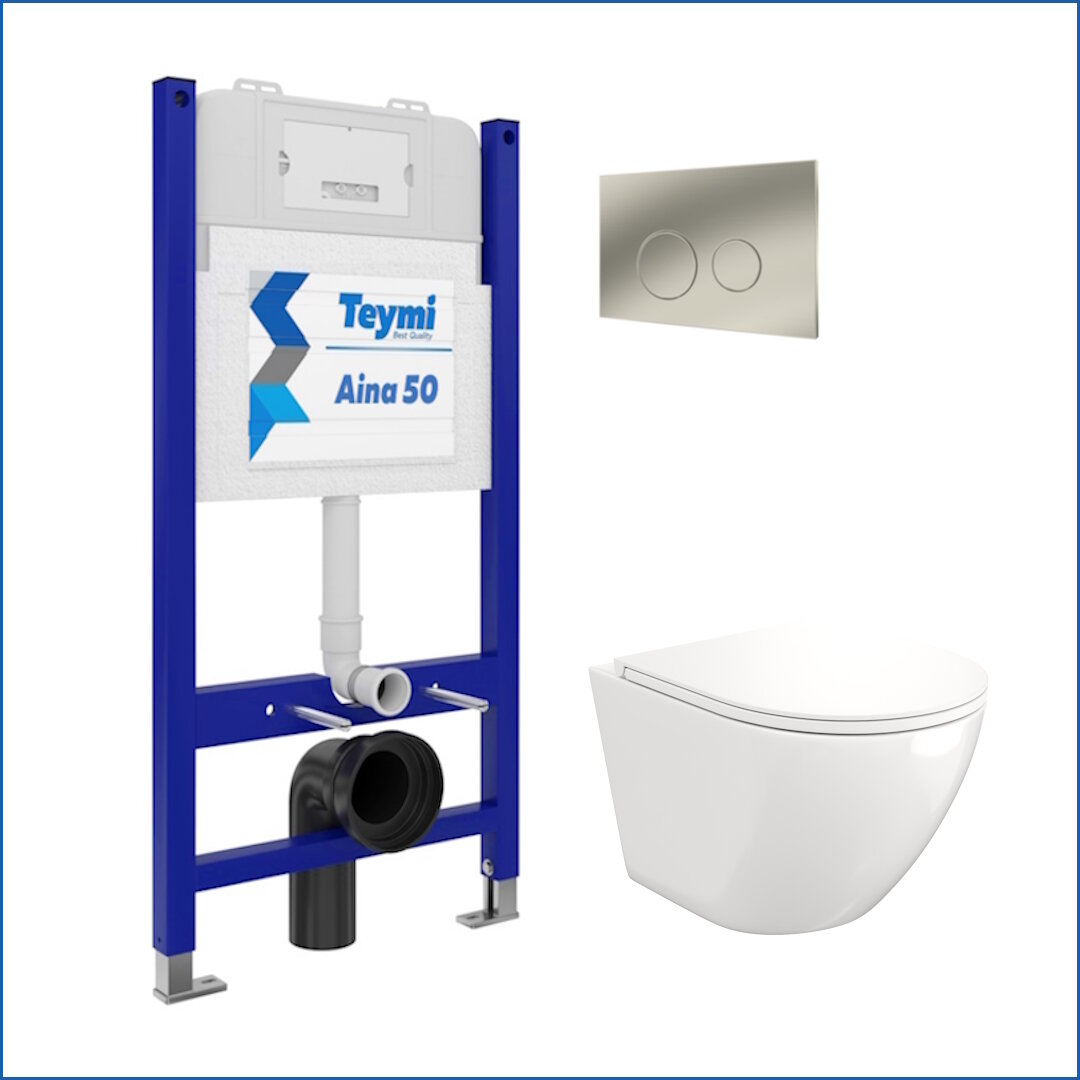 Инсталляция с унитазом комплект 5 в 1 Teymi унитаз подвесной безободковый Lina S кнопка нержавеющая сталь F13413