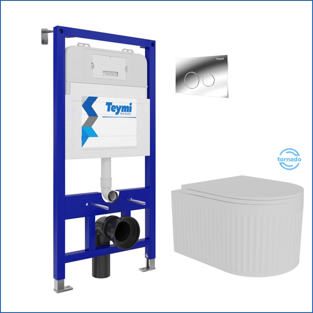 Инсталляция с унитазом комплект 5 в 1 Teymi унитаз подвесной безободковый торнадо Martta Vortex кнопка хром F14530