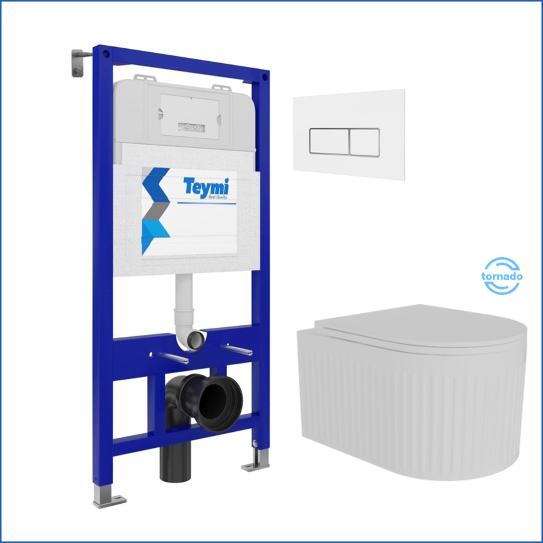 Инсталляция с унитазом комплект 5 в 1 Teymi унитаз подвесной безободковый торнадо Martta Vortex кнопка нержавеющая сталь F14517