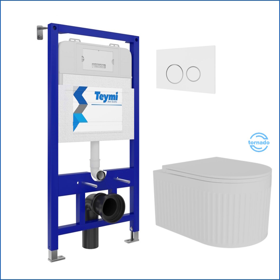 Инсталляция с унитазом комплект 5 в 1 Teymi унитаз подвесной безободковый торнадо Martta Vortex кнопка нержавеющая сталь F14517