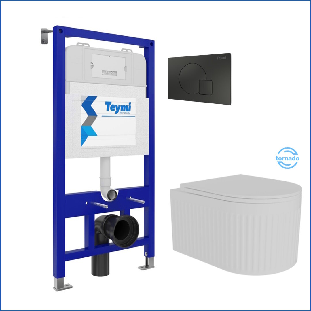 Инсталляция с унитазом комплект 5 в 1 Teymi унитаз подвесной безободковый торнадо Martta Vortex кнопка черная F14515