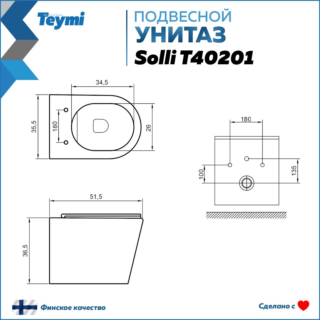 Инсталляция с унитазом комплект 5 в 1 Teymi унитаз подвесной безободковый Solli кнопка нержавеющая сталь F13412