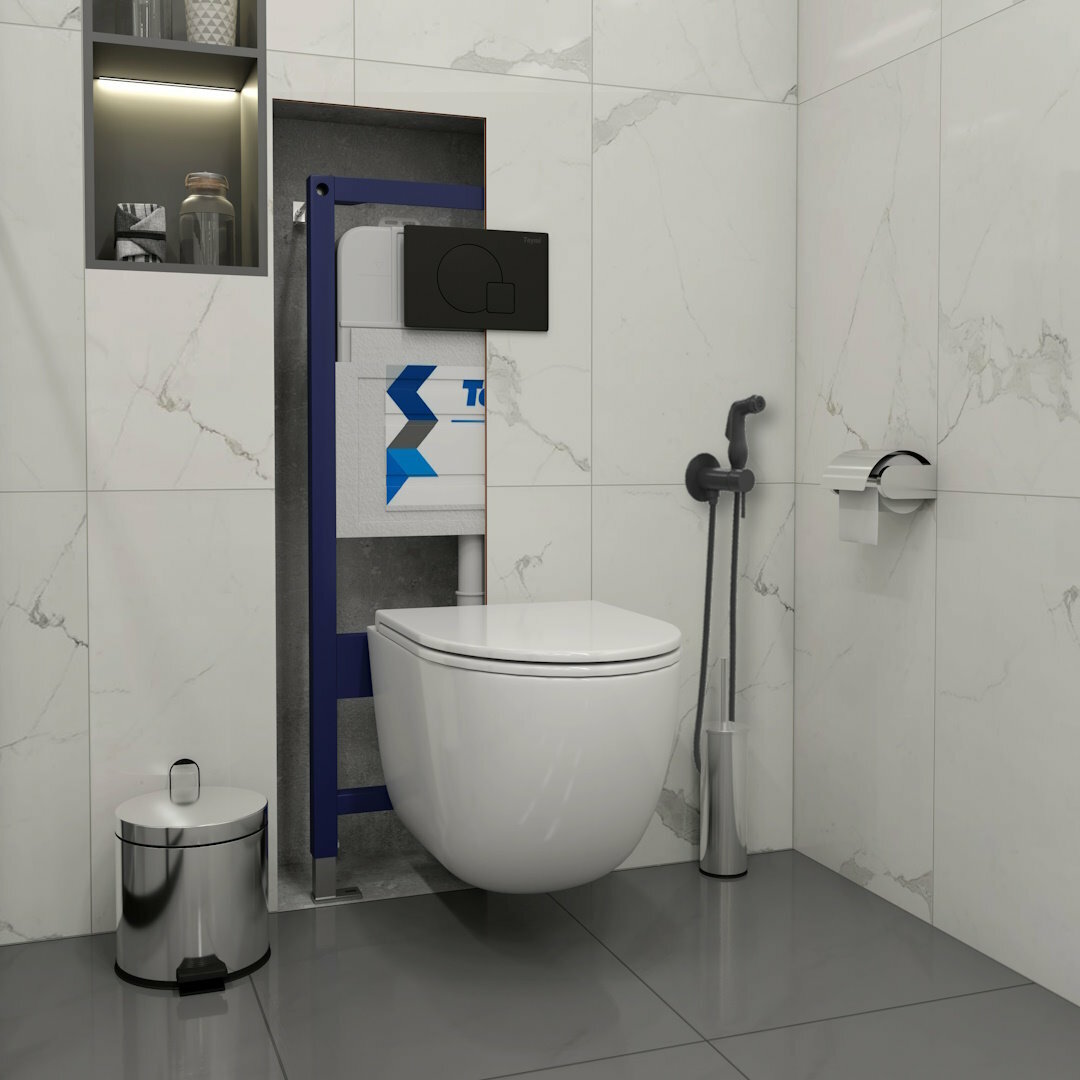 Ниже Вы можете прочитать отзывы на Инсталляция с унитазом комплект 6 в 1 Teymi унитаз подвесной безободковый Lina S кнопка черная гигиенический душ черный F08284, ознакомится с подробными характеристиками, посмотреть интересные обзоры и фотографии на Инсталляция с унитазом комплект 6 в 1 Teymi унитаз подвесной безободковый Lina S кнопка черная гигиенический душ черный F08284.
