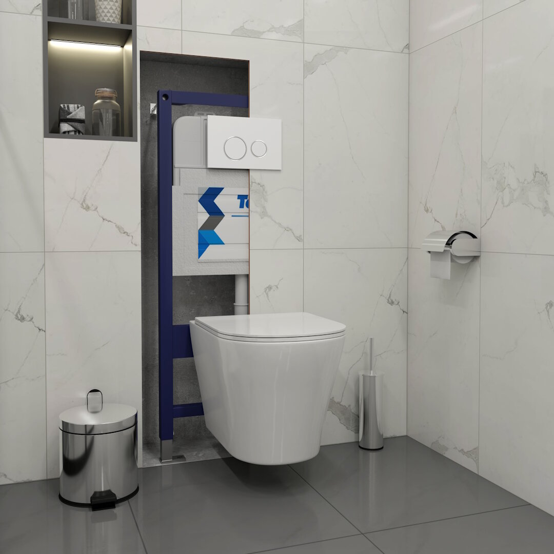Инсталляция с унитазом комплект 5 в 1 Teymi унитаз подвесной безободковый Ellie кнопка нержавеющая сталь F13447