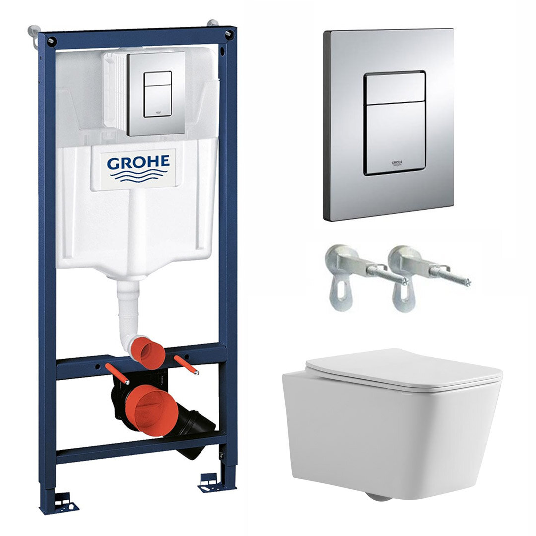 Инсталляция Grohe Rapid SLс квадрат кнопкой хром в комплекте с подвесным унитазом Benneri Milano Tornado и крепежами.