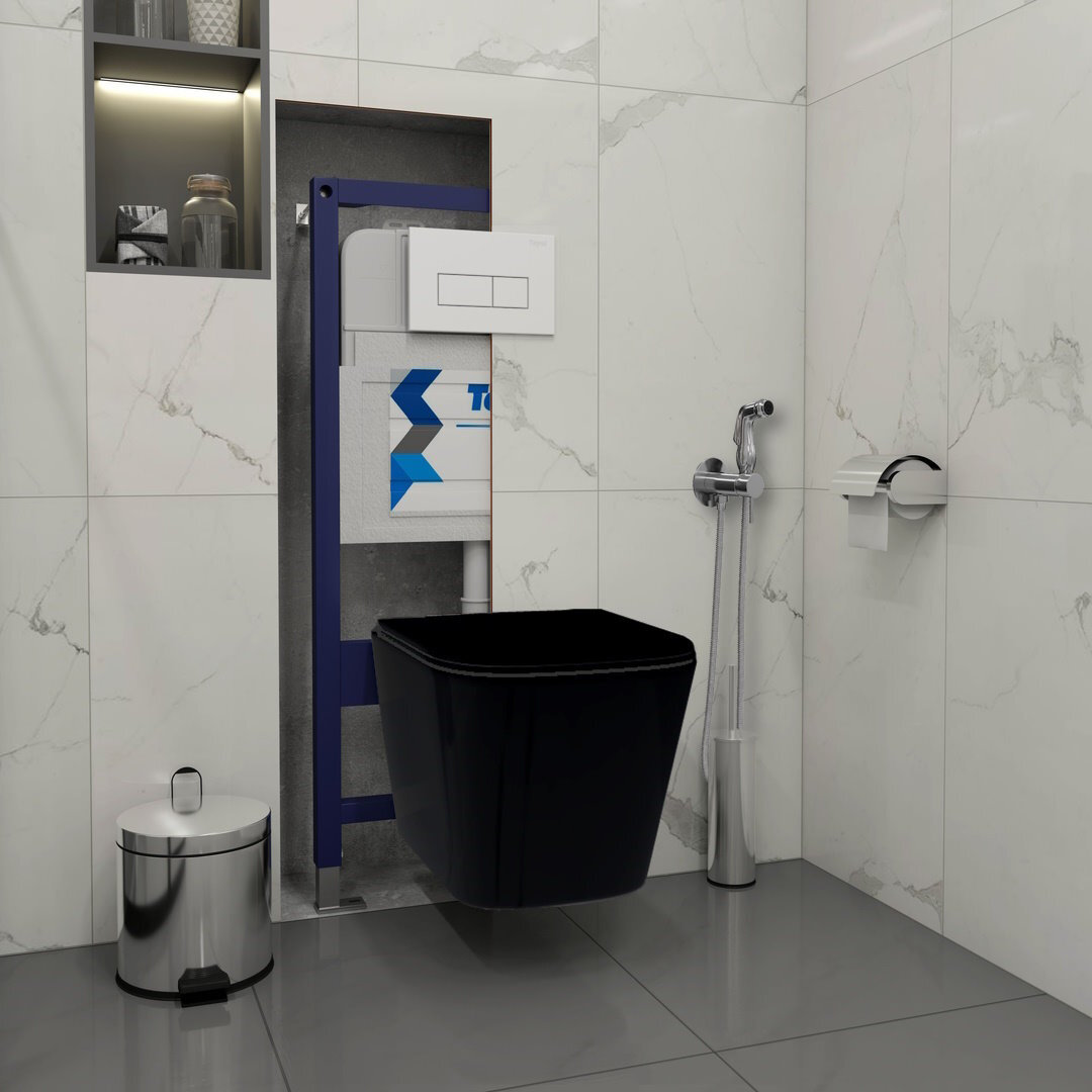 Ниже Вы можете прочитать отзывы на Инсталляция с унитазом комплект 6 в 1 Teymi унитаз подвесной безободковый черный Helmi Black кнопка белая гигиенический душ хром F08395, ознакомится с подробными характеристиками, посмотреть интересные обзоры и фотографии на Инсталляция с унитазом комплект 6 в 1 Teymi унитаз подвесной безободковый черный Helmi Black кнопка белая гигиенический душ хром F08395.