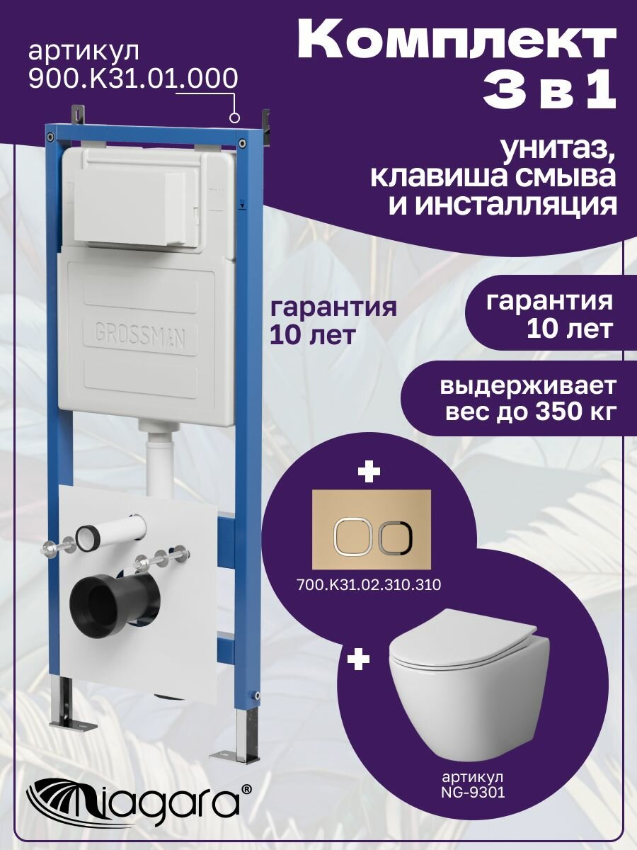 Комплект 3 в 1: Унитаз NG-9301 + Инсталляция 900. K31.01.000 + Кнопка 700. K31.02.310.310 интересное: