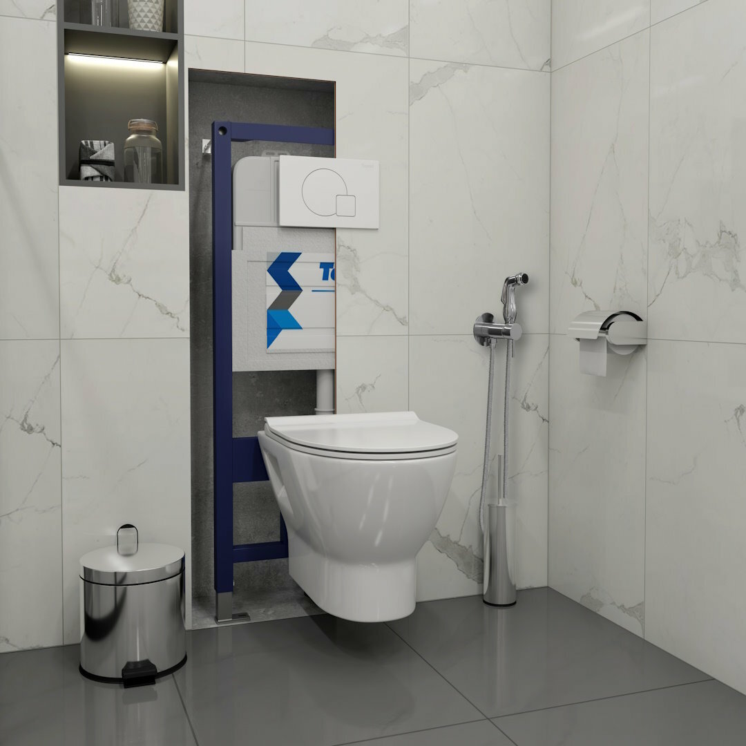 Инсталляция с унитазом комплект 6 в 1 Teymi унитаз подвесной безободковый Ritta кнопка белая гигиенический душ хром F08473