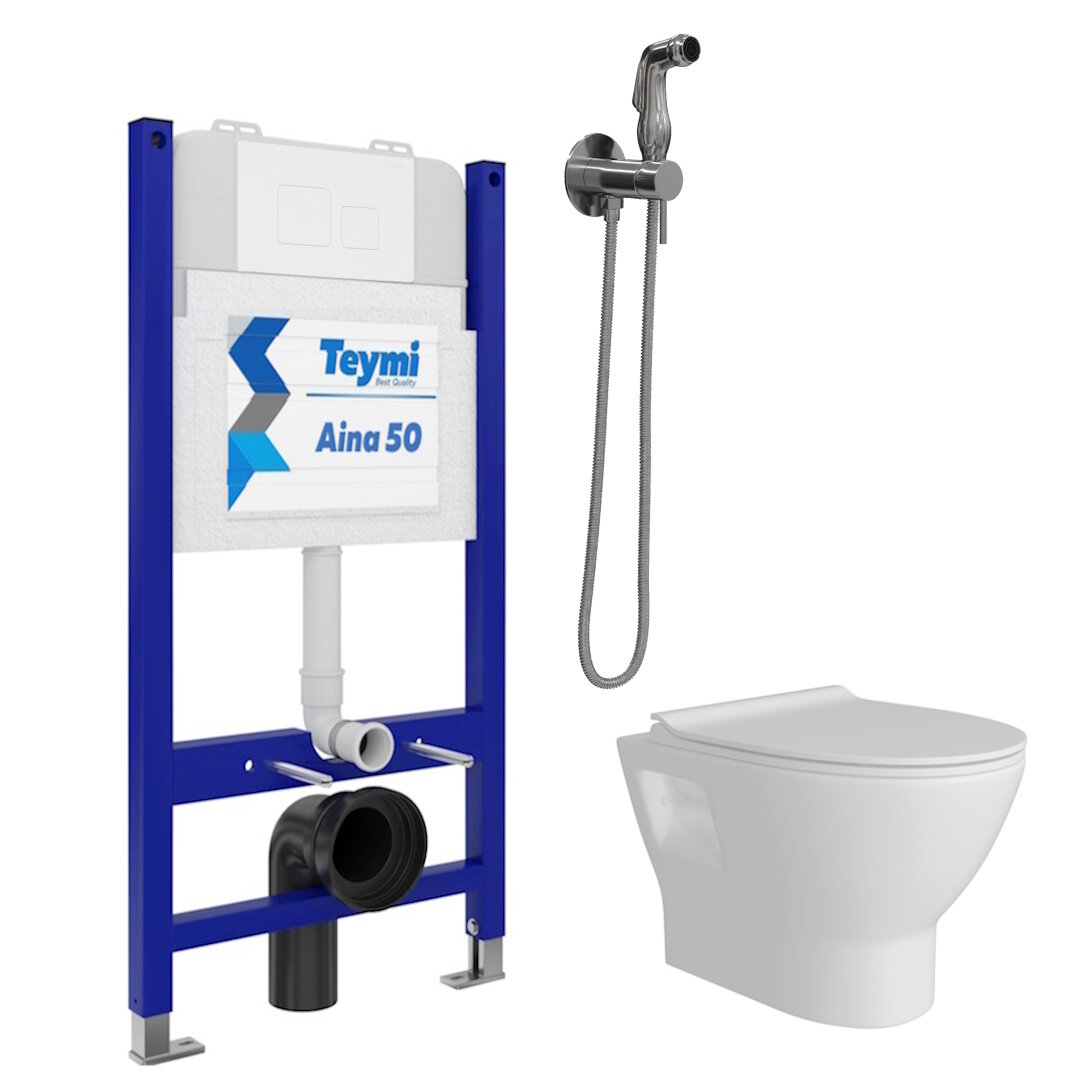 Инсталляция с унитазом комплект 6 в 1 Teymi унитаз подвесной безободковый Ritta кнопка хром гигиенический душ хром F08467