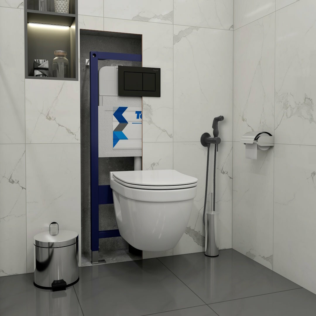 Ниже Вы можете прочитать отзывы на Инсталляция с унитазом комплект 6 в 1 Teymi унитаз подвесной безободковый Vitra Pro кнопка черная гигиенический душ черный F08417, ознакомится с подробными характеристиками, посмотреть интересные обзоры и фотографии на Инсталляция с унитазом комплект 6 в 1 Teymi унитаз подвесной безободковый Vitra Pro кнопка черная гигиенический душ черный F08417.