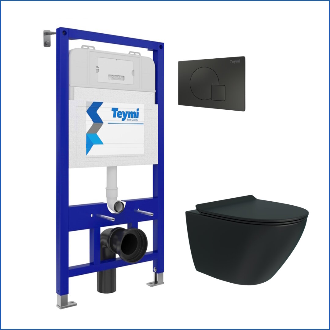 Ниже Вы можете прочитать отзывы на Инсталляция с унитазом комплект 5 в 1 Teymi унитаз подвесной безободковый торнадо черный Lina Pro Vortex Black кнопка черная F14979, ознакомится с подробными характеристиками, посмотреть интересные обзоры и фотографии на Инсталляция с унитазом комплект 5 в 1 Teymi унитаз подвесной безободковый торнадо черный Lina Pro Vortex Black кнопка черная F14979.
