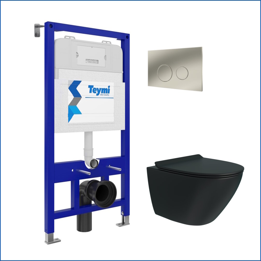 Инсталляция с унитазом комплект 5 в 1 Teymi унитаз подвесной безободковый торнадо черный Lina Pro Vortex Black кнопка нержавеющая сталь F14974