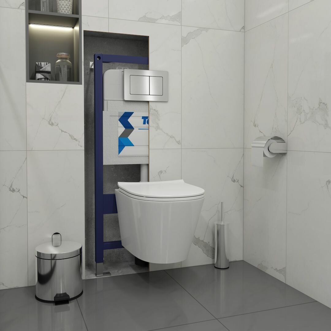 Инсталляция с унитазом комплект 5 в 1 Teymi унитаз подвесной безободковый Solli Pro кнопка нержавеющая сталь F15730