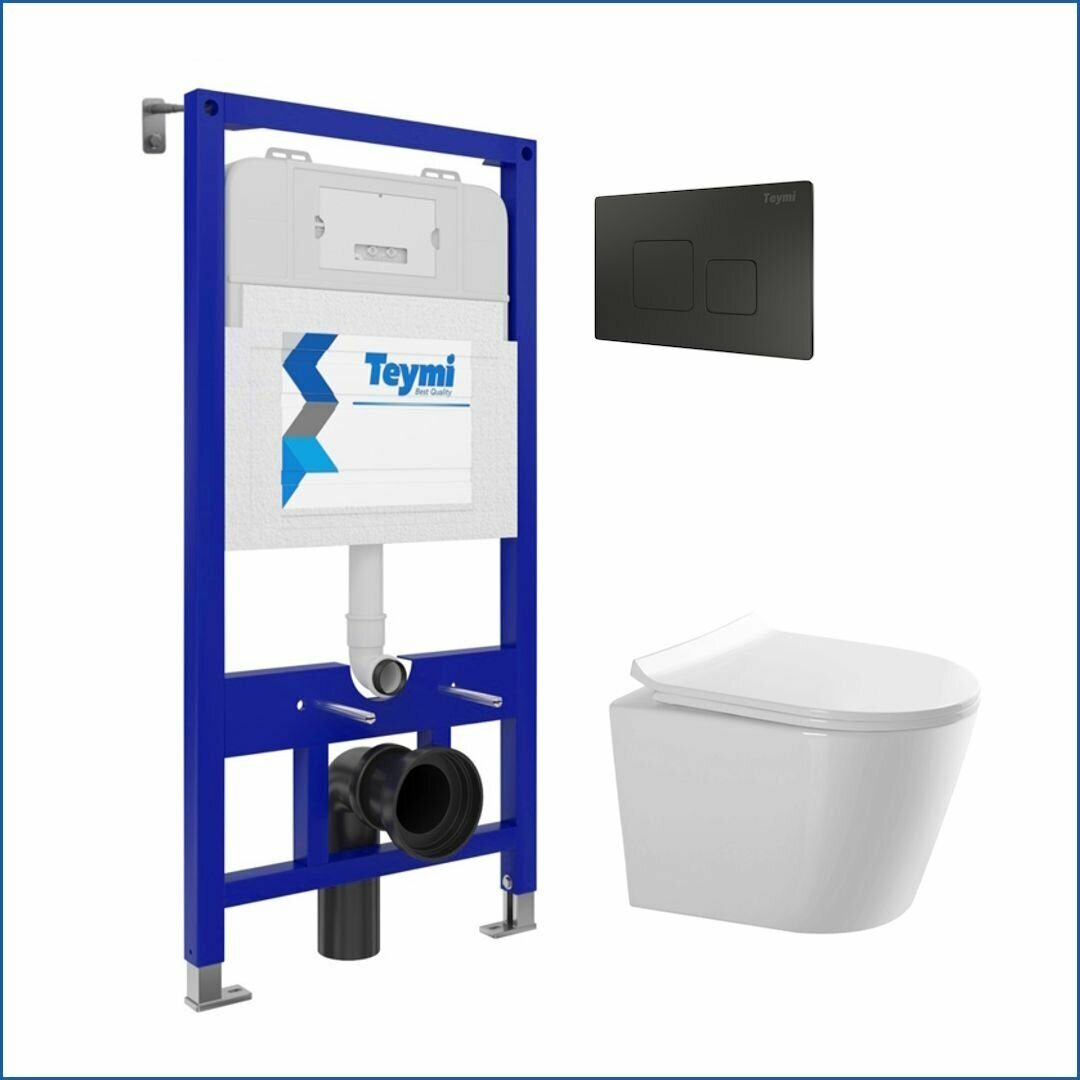 Ниже Вы можете прочитать отзывы на Инсталляция с унитазом комплект 5 в 1 Teymi унитаз подвесной безободковый Solli Pro кнопка черная F15738, ознакомится с подробными характеристиками, посмотреть интересные обзоры и фотографии на Инсталляция с унитазом комплект 5 в 1 Teymi унитаз подвесной безободковый Solli Pro кнопка черная F15738.