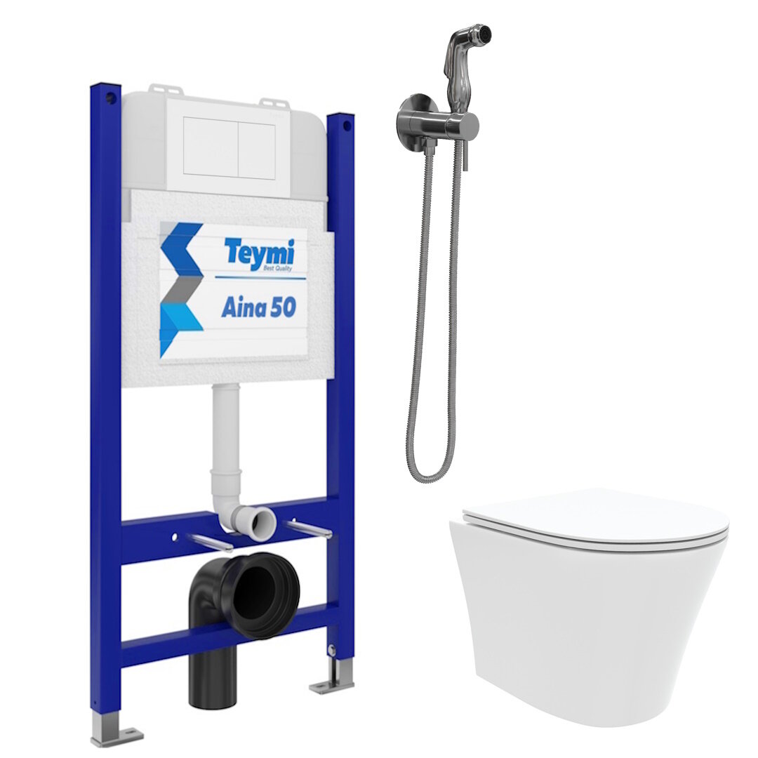 Инсталляция с унитазом комплект 6 в 1 Teymi унитаз подвесной безободковый Ellie кнопка белая гигиенический душ хром F08335