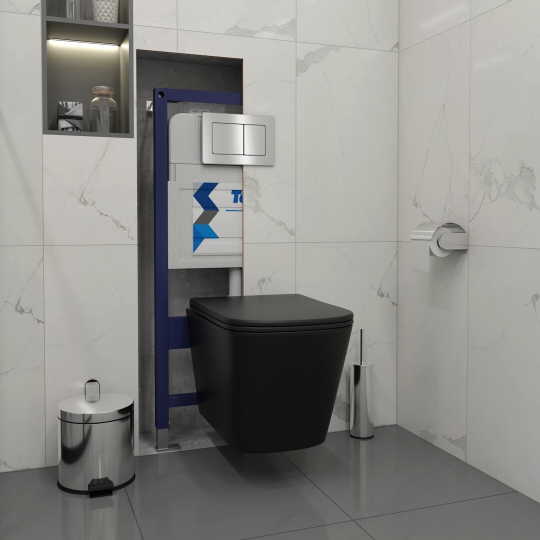 СохранитьИнсталляция с унитазом комплект 5 в 1 Teymi унитаз подвесной безободковый черный Helmi Black кнопка нержавеющая сталь F13475 интересное: