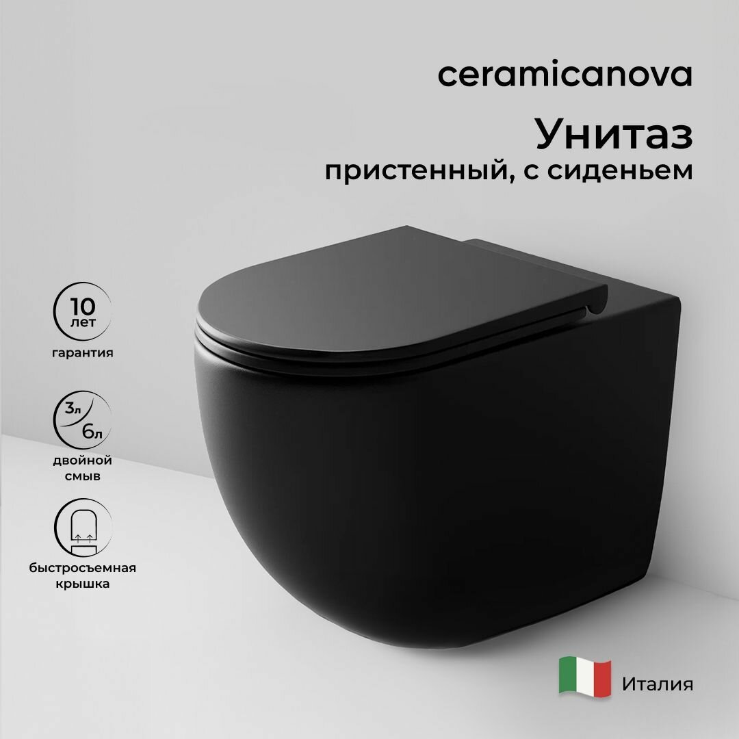 Приставной унитаз Ceramicanova Metropol Rimless черный матовый CN4004MB безободковый с микролифтом интересное: