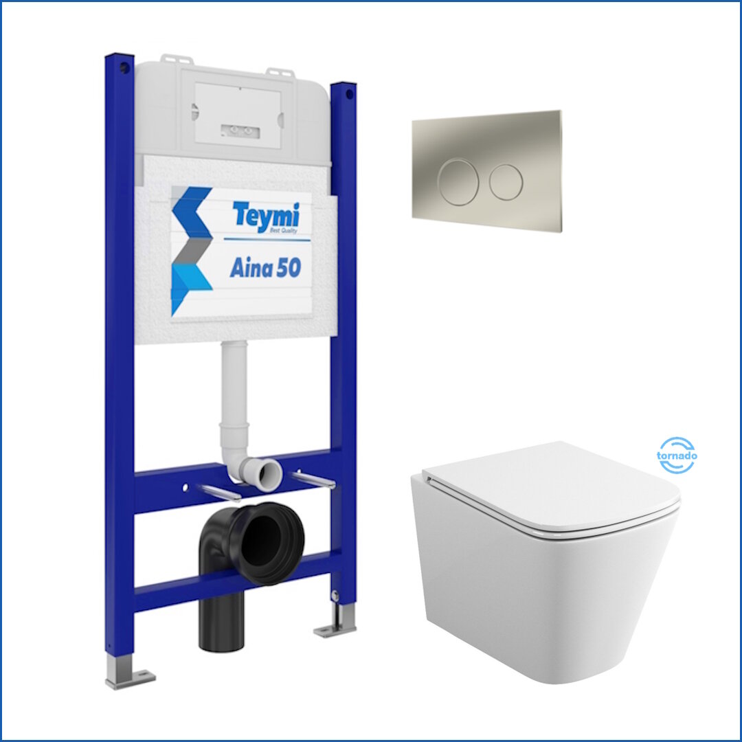 Инсталляция с унитазом комплект 5 в 1 Teymi унитаз подвесной безободковый торнадо Helmi Vortex кнопка нержавеющая сталь F13433