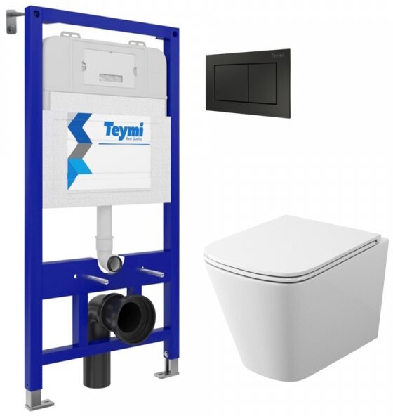 Инсталляция с унитазом комплект 5 в 1 Teymi унитаз подвесной безободковый торнадо Helmi Vortex кнопка черная T70740