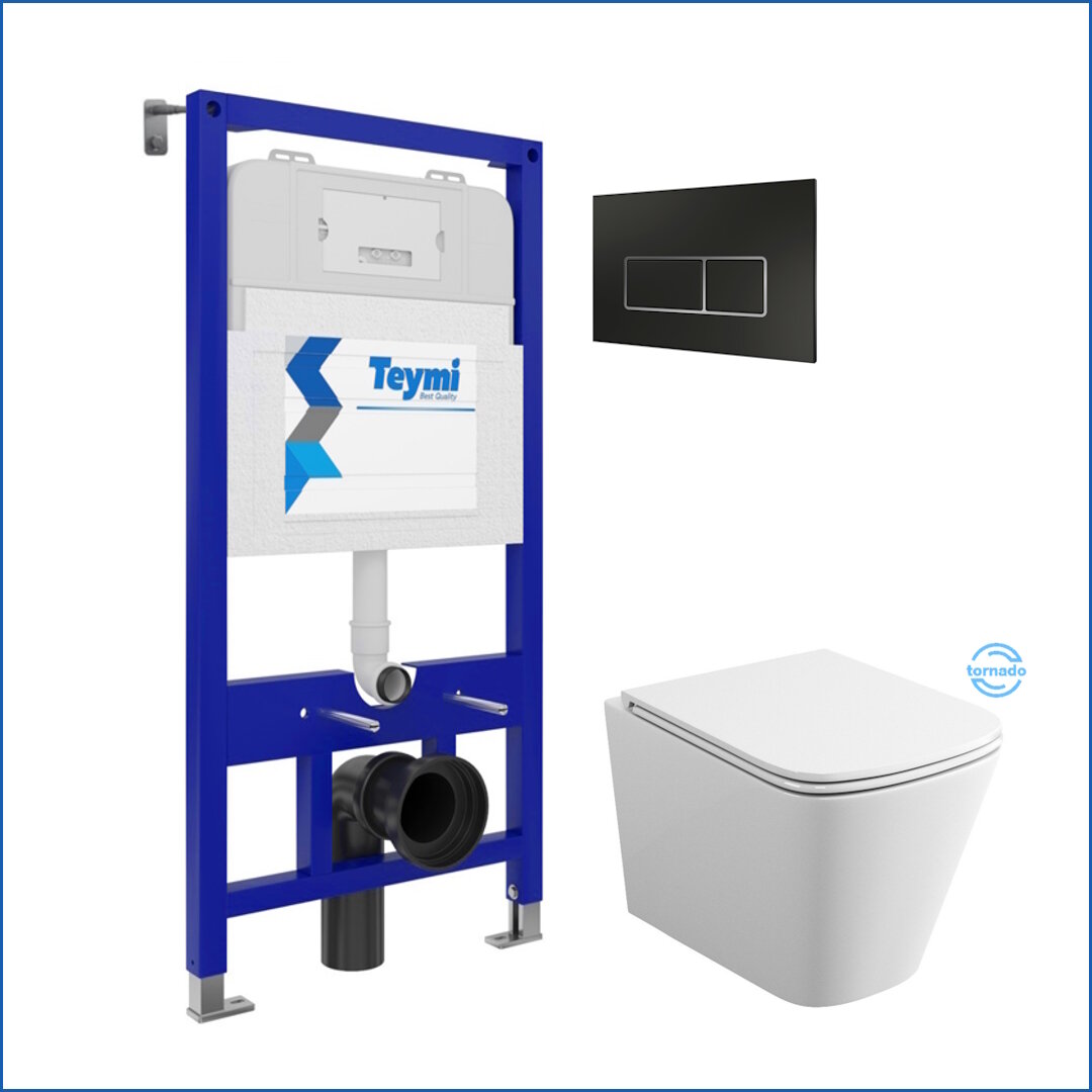 Инсталляция с унитазом комплект 5 в 1 Teymi унитаз подвесной безободковый торнадо Helmi Vortex кнопка черная T70738