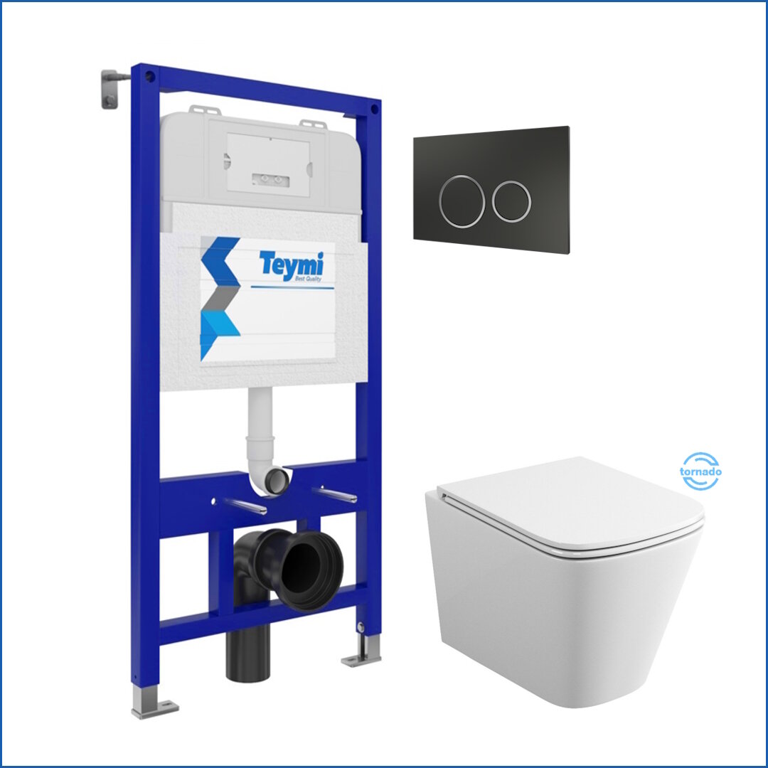 Инсталляция с унитазом комплект 5 в 1 Teymi унитаз подвесной безободковый торнадо Helmi Vortex кнопка черная T70738