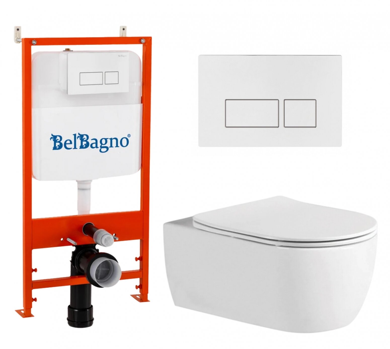 Купить Комплект 3 в 1 инсталляция BelBagno BB026/BB042BL + Унитаз подвесной AQUATEK Европа AQ1106L-00 + кнопка белая глянцевая