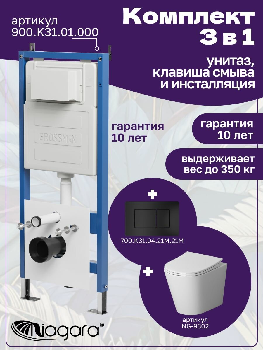Комплект 3 в 1: Унитаз NG-9302 + Инсталляция 900. K31.01.000 + Кнопка 700. K31.04.21M.21M интересное:
