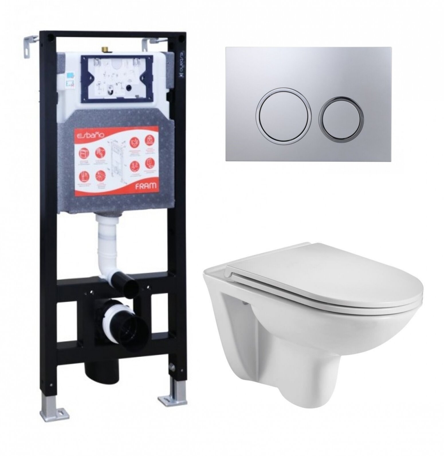 Купить Комплект 3 в 1 инсталляция ESBANO FRAM + Подвесной унитаз WeltWasser Baarbach 004 GL-WT + кнопка хром матовая