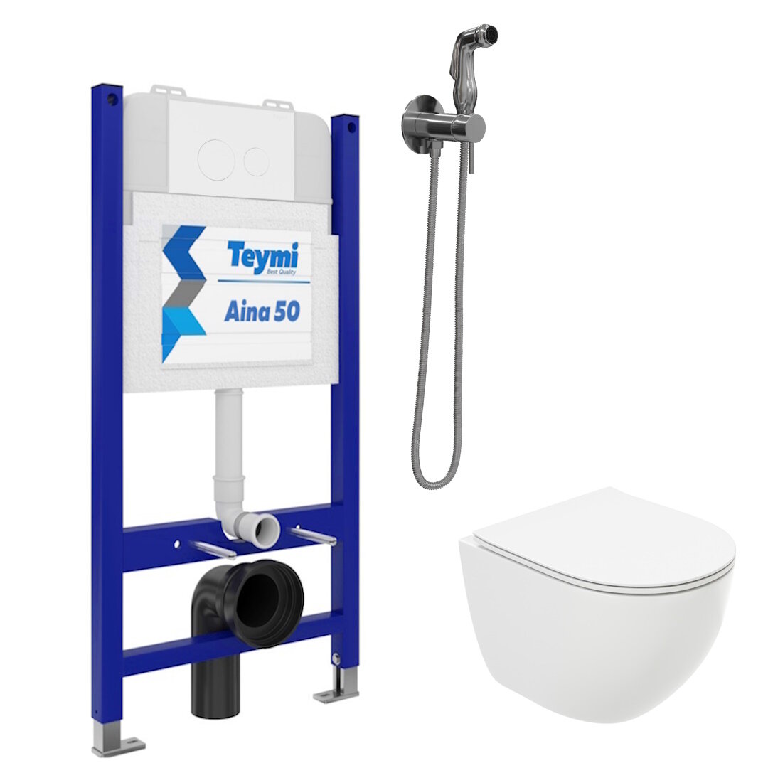 Инсталляция с унитазом 6 в 1 Teymi унитаз подвесной безободковый Lina Media кнопка хром гигиенический душ хром F08347