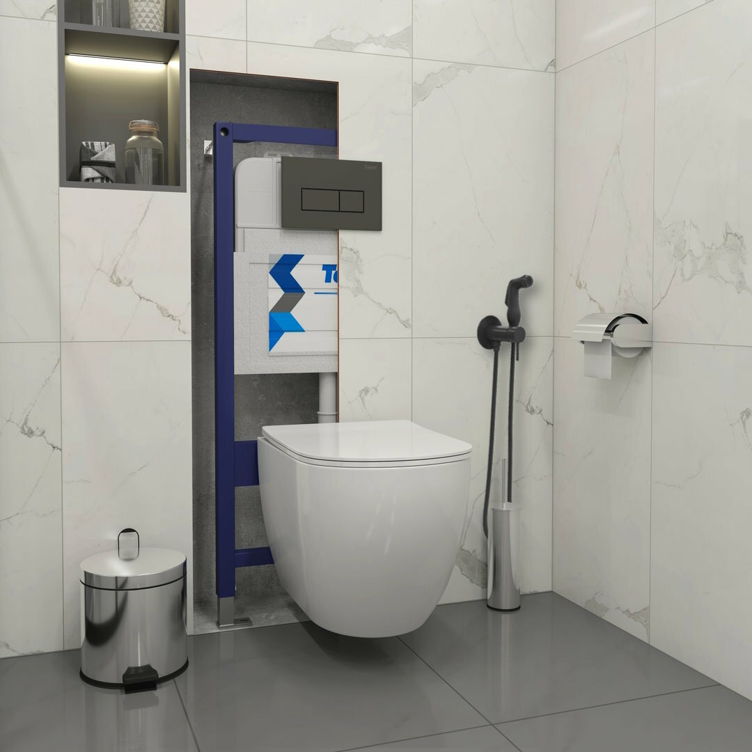 Купить Инсталляция с унитазом комплект 6 в 1 Teymi унитаз подвесной безободковый Lina Media кнопка черная гигиенический душ черный F08355