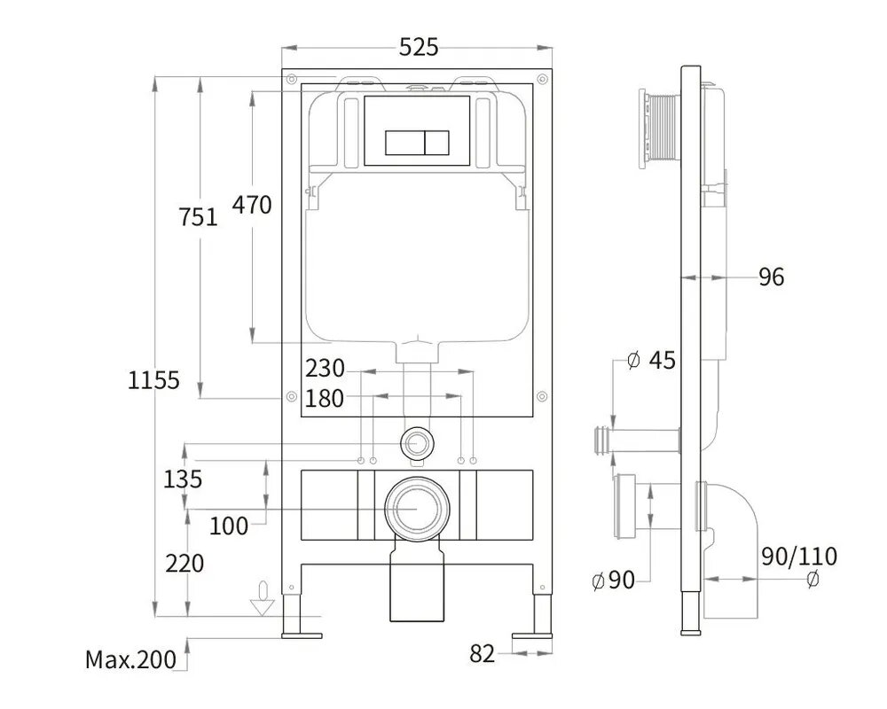 Купить Инсталляция с унитазом Weltwasser BAMBERG 525 унитаз ODENBACH 004 GL-WT белый глянец, клавиша BAMBERG BL черный