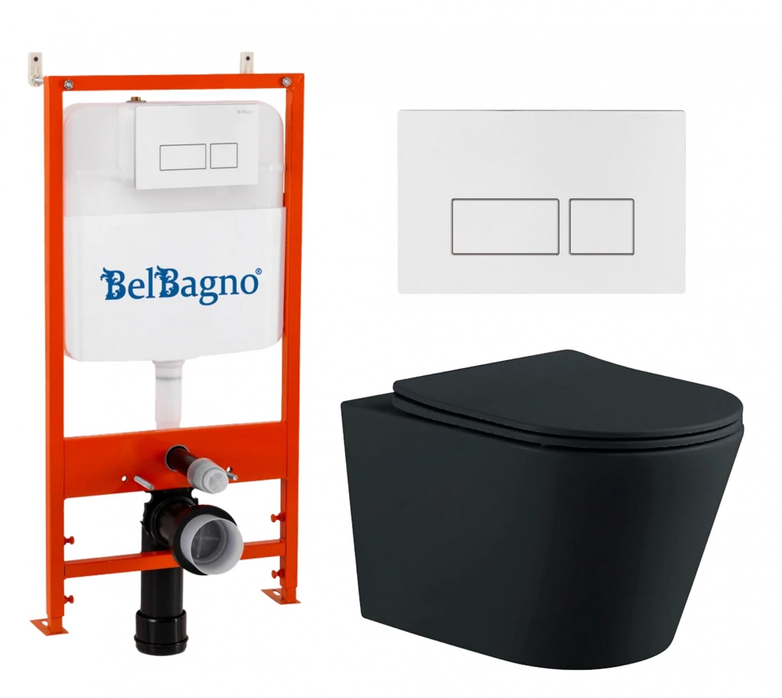 Купить Комплект 3 в 1 инсталляция BelBagno BB026/BB042BL + Унитаз подвесной AQUATEK Вега AQ1905-MB + кнопка белая глянцевая