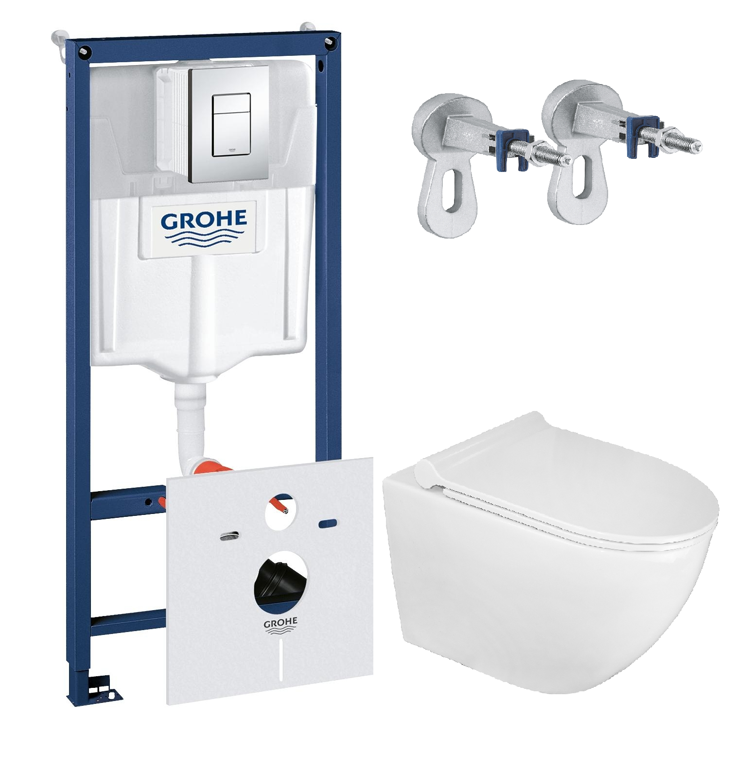 Купить Готовый комплект: Инсталляция Grohe хром кв с прокладкой + Унитаз безободковый Azario Geno AZ-2196D с сиденьем