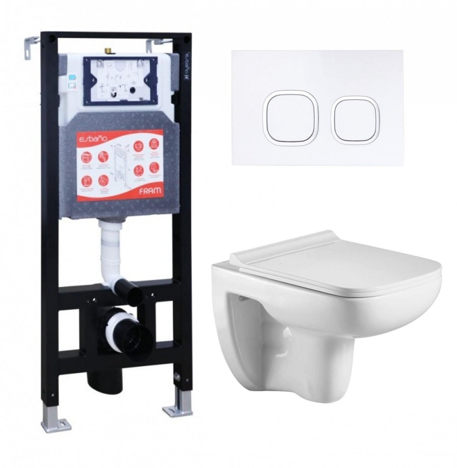Комплект 3 в 1 инсталляция ESBANO FRAM + Подвесной унитаз WeltWasser Kehlbach 004 GL-WT + кнопка белая интересное: