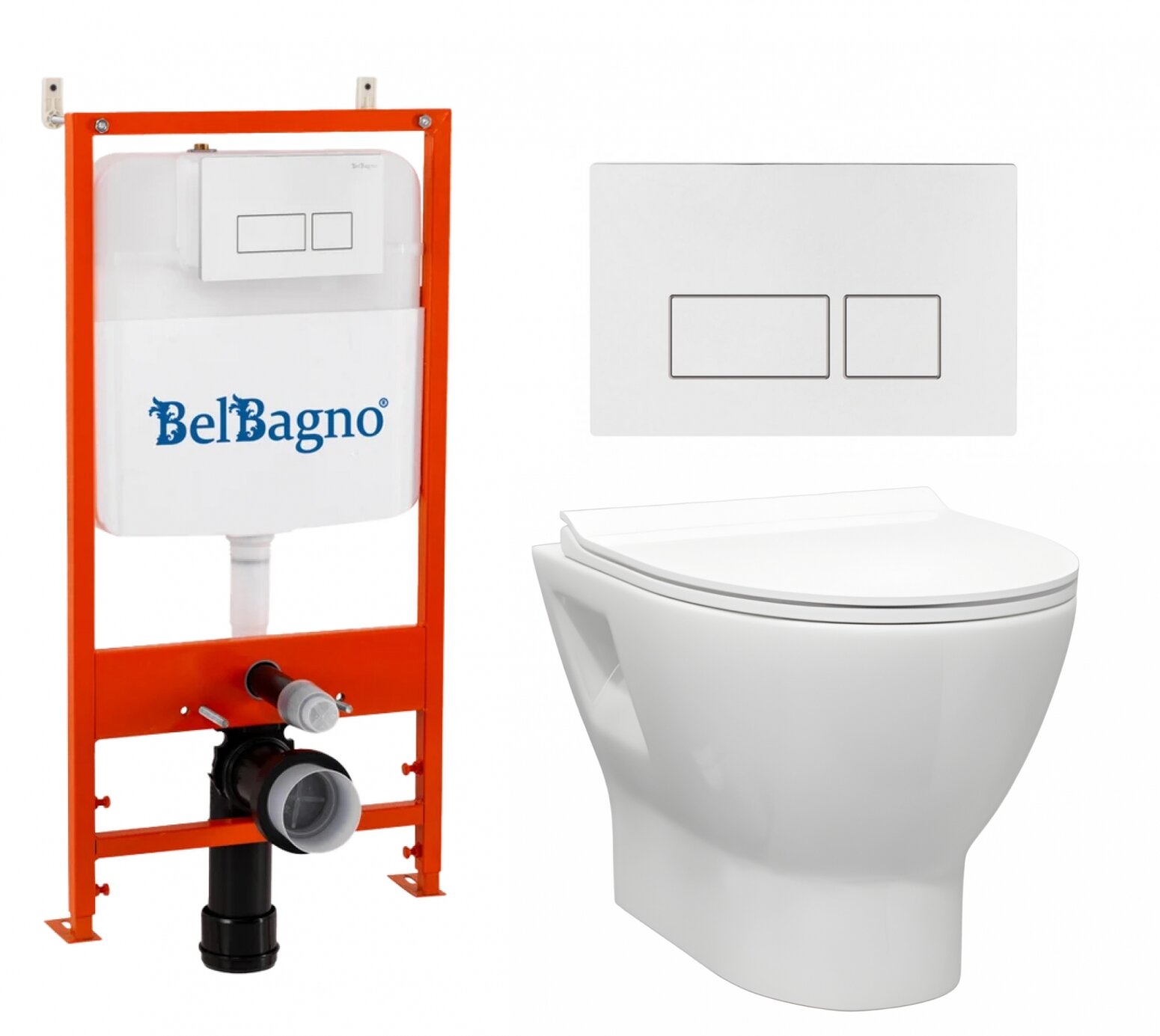 Купить Комплект 3 в 1 инсталляция BelBagno BB026/BB042BL + Унитаз подвесной Enio Nativo EN1270551 + кнопка белая глянцевая