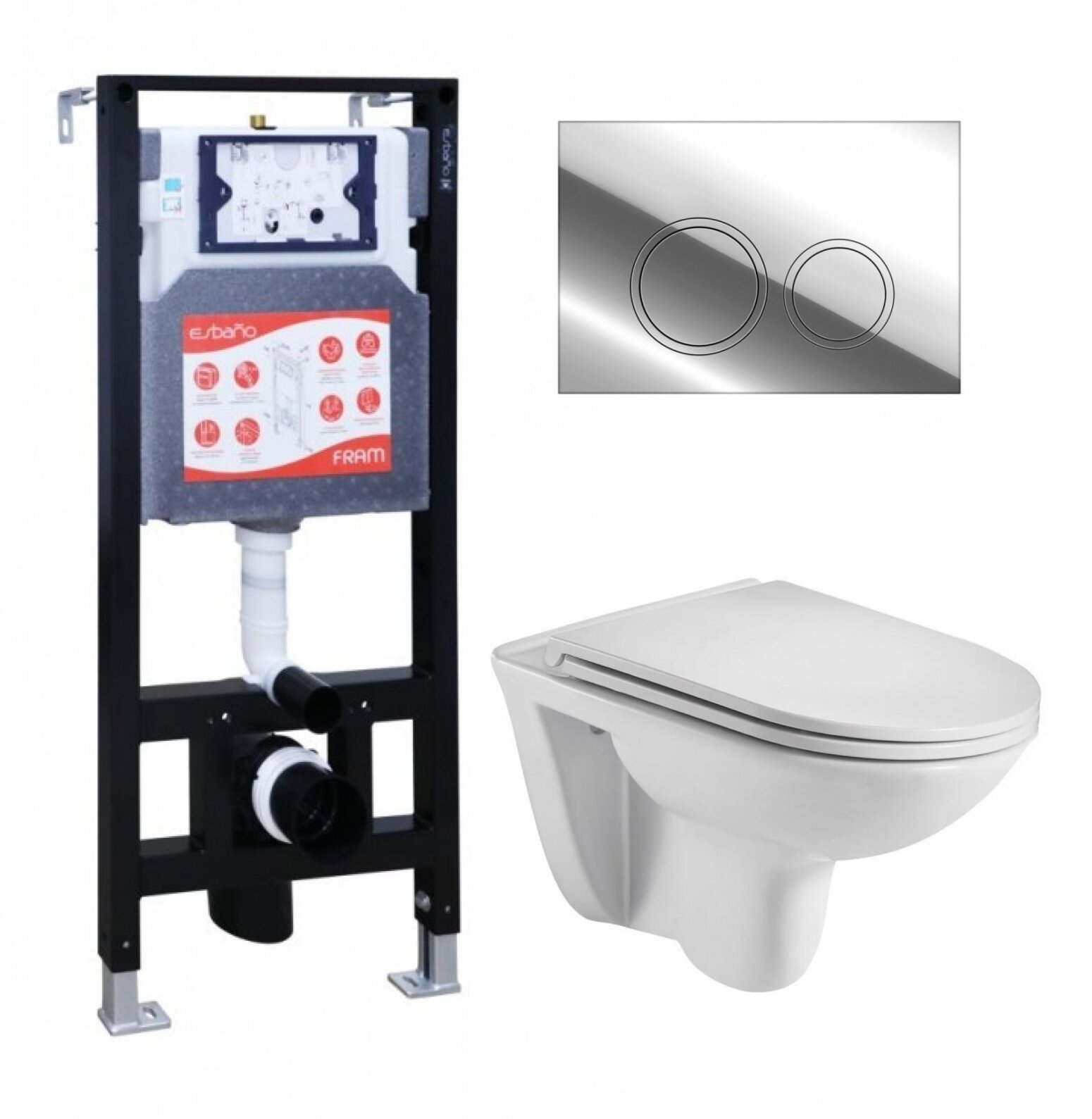 Купить Комплект 3 в 1 инсталляция ESBANO FRAM + Подвесной унитаз WeltWasser Baarbach 004 GL-WT + кнопка хром глянцевая